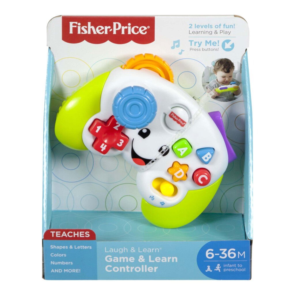 Baby’s en peuters beginnen te ‘gamen’ met de Leerplezier Spelen en Leren Controller van Fisher-Price. Deze ‘gamecontroller’ heeft twee ‘gamestanden’ en leuke praktische activiteiten, terwijl je kleintje met spannende liedjes en zinnetjes kennis maakt met getallen, vormen, kleuren en meer voor spelenderwijs leren. Het realistische ontwerp van de controller bevat een beweegbare joystick en ABCD- en getallenknoppen om lichtjes, muziek en geluid te activeren. Met de knop met de wereldbol kun je een taal kiezen: Nederlands, Frans, Duits, Italiaans of Engels. Geschikt voor kinderen vanaf 6 maanden.